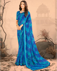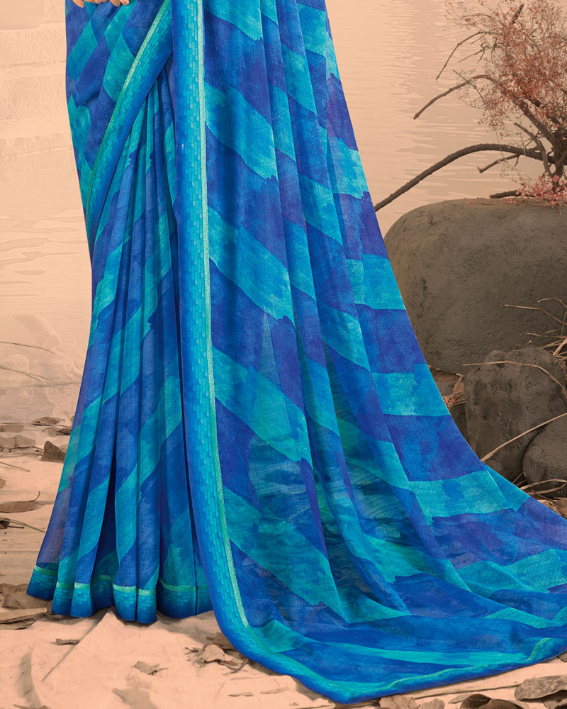 Vishal Prints Dark Blue Printed Chiffon Saree With Fancy Border