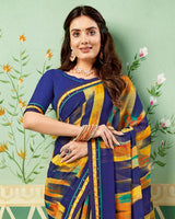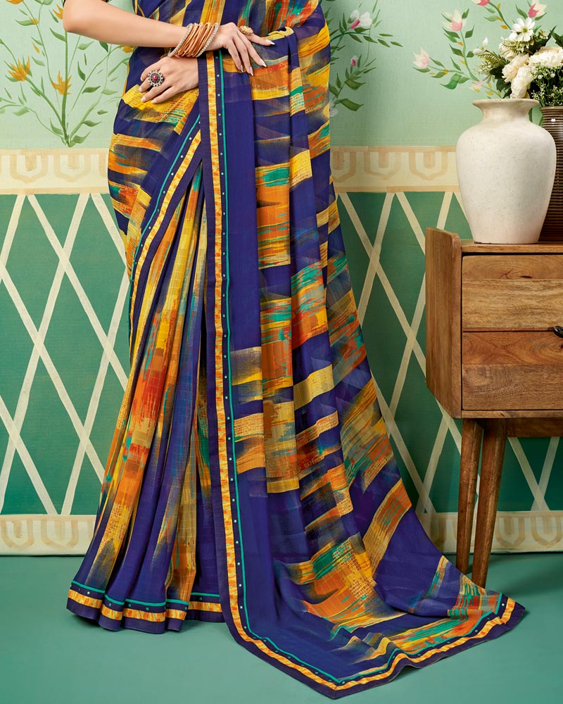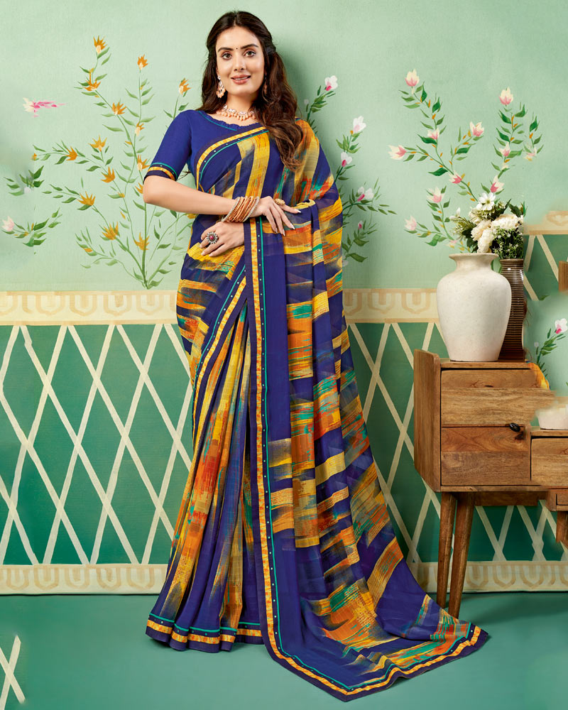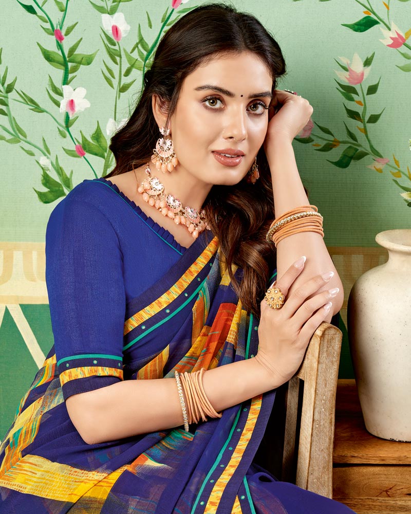 Vishal Prints Dark Blue Printed Georgette Saree With Border