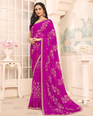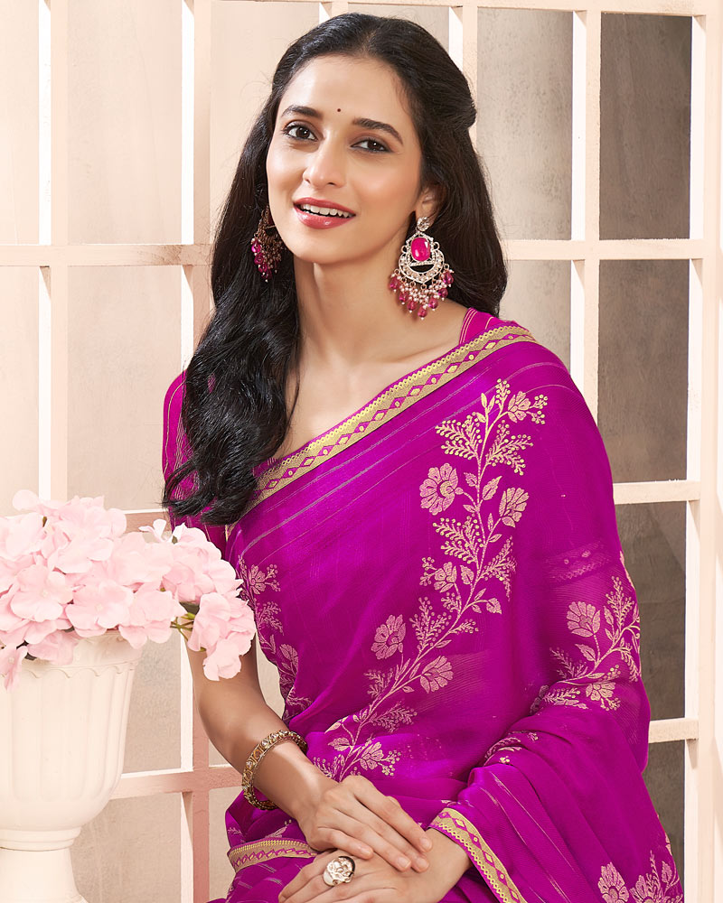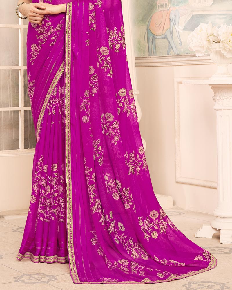 Vishal Prints Dark Fuchsia Designer Patterned Chiffon Saree With Foil Print And Printed Fancy Border