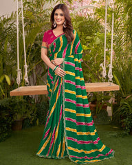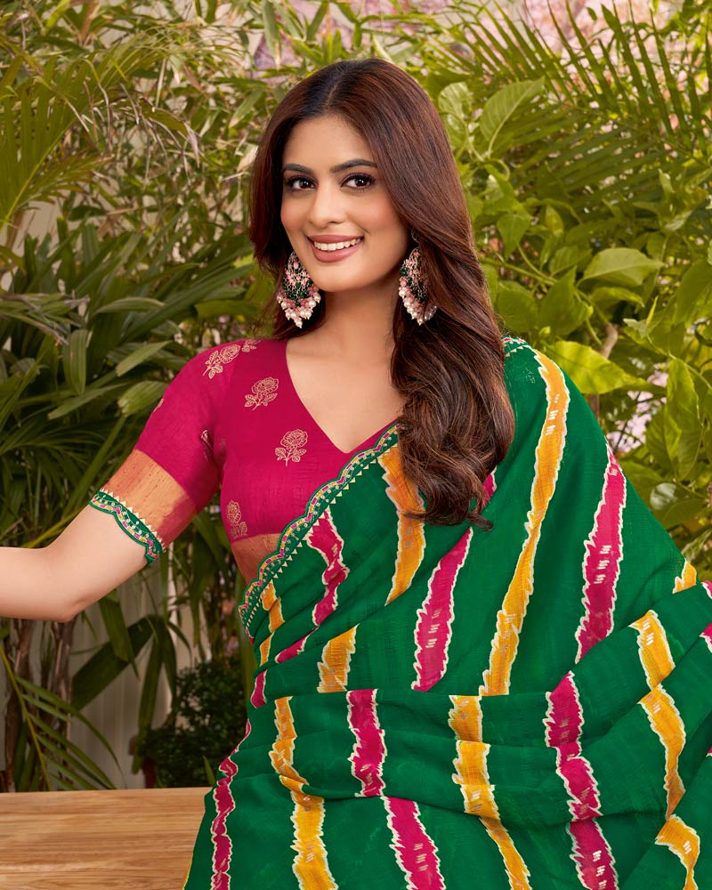 Vishal Prints Dark Green Printed Fancy Chiffon Traditional Print Saree With Cut Work Border