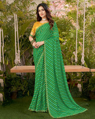Vishal Prints Dark Green Printed Fancy Chiffon Traditional Print Saree With Foil Print And Cut Work Border