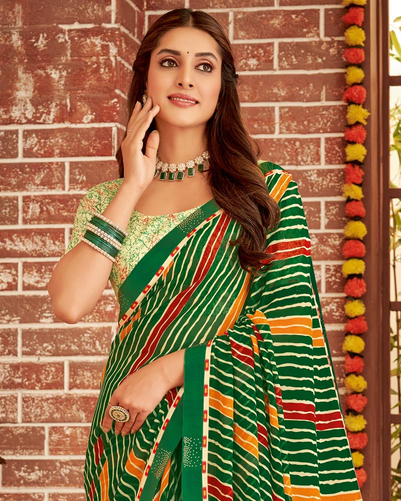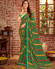 Vishal Prints Dark Green Printed Georgette Saree With Fancy Border
