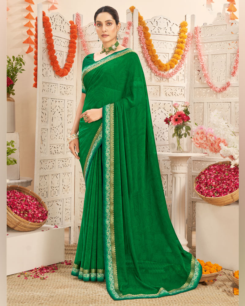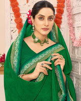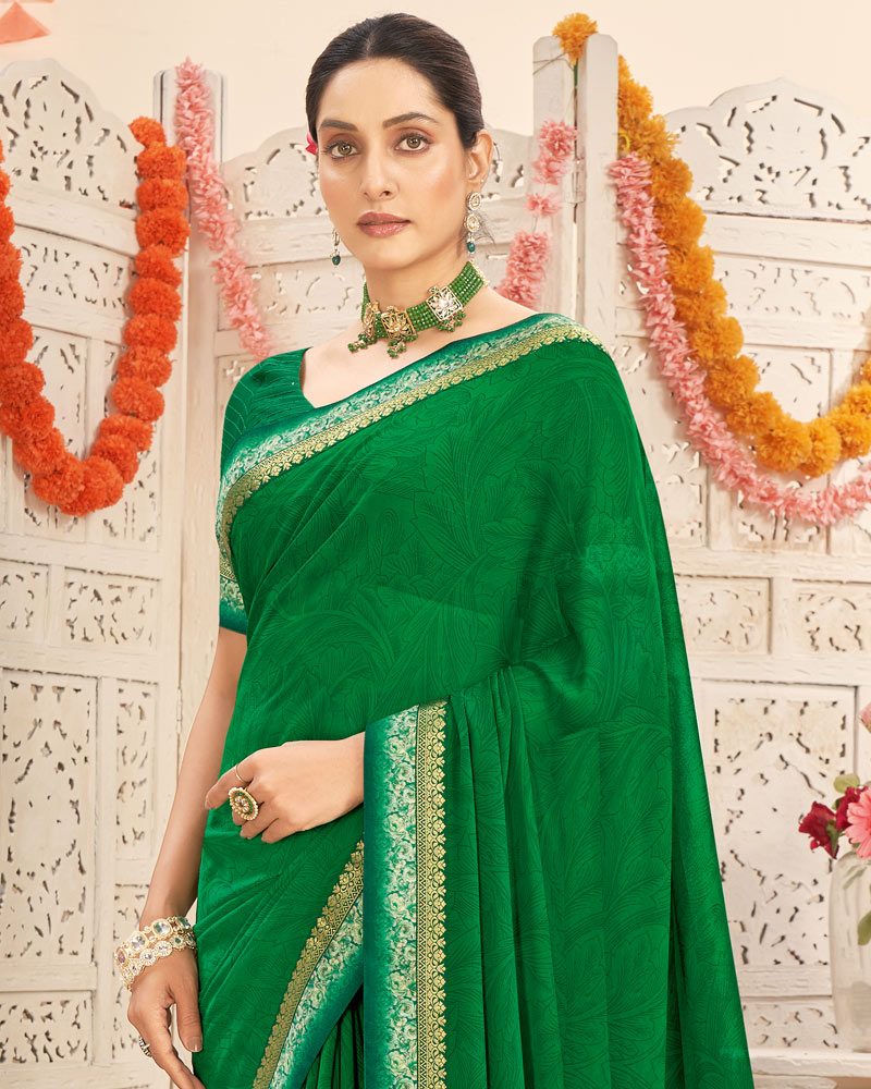 Vishal Prints Dark Green Printed Georgette Saree With Fancy Border