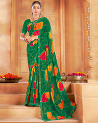 Vishal Prints Dark Green Printed Georgette Saree With Fancy Border