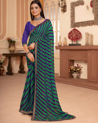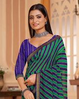 Vishal Prints Dark Green Printed Georgette Saree With Zari Border