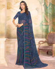 Vishal Prints Dark Greyish Blue Printed Georgette Saree With Fancy Border