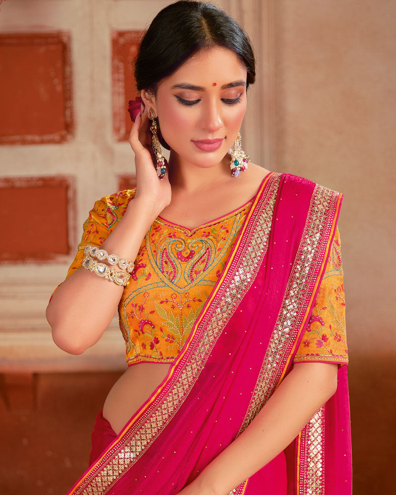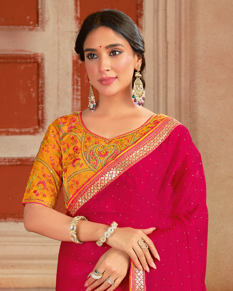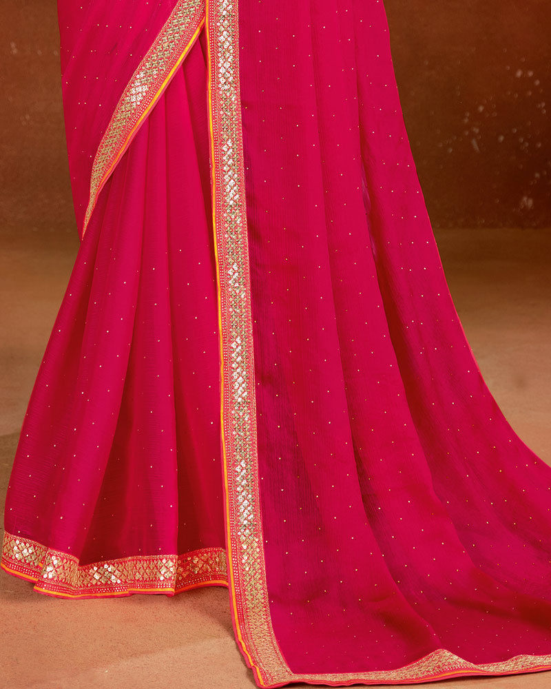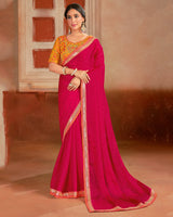 Vishal Prints Dark Hot Pink Designer Fancy Chiffon Saree With Diamond Work And Embroidery Border
