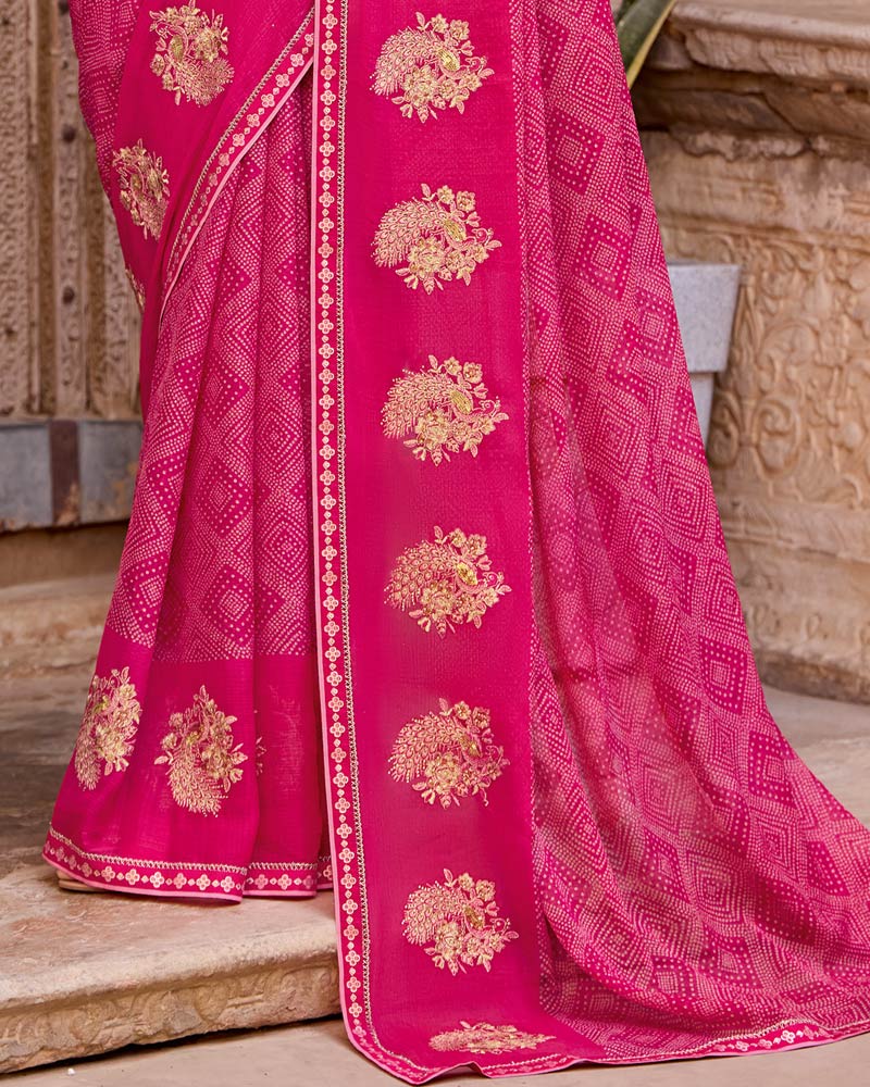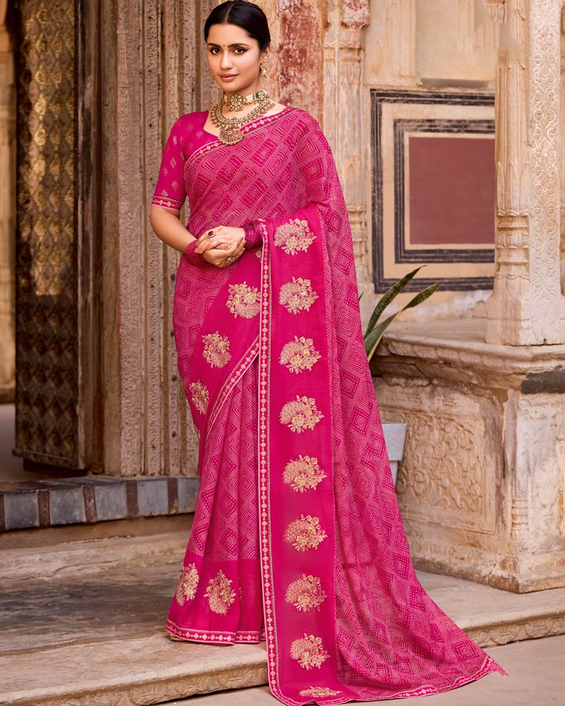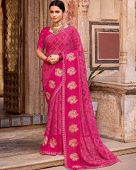 Vishal Prints Dark Hot Pink Designer Printed Fancy Chiffon Saree With Embroidery Work And Fancy Border