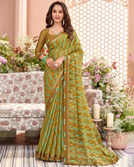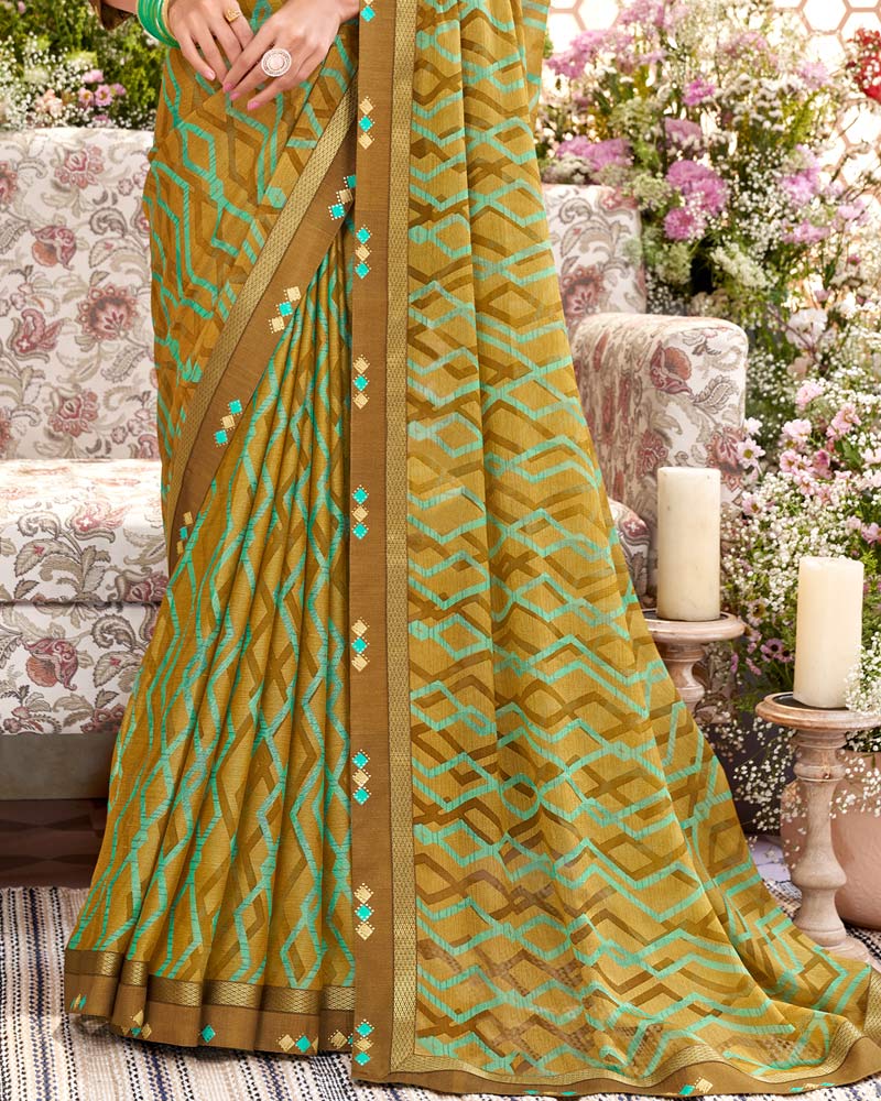 Vishal Prints Dark Mustard Printed Brasso Saree With Fancy Border