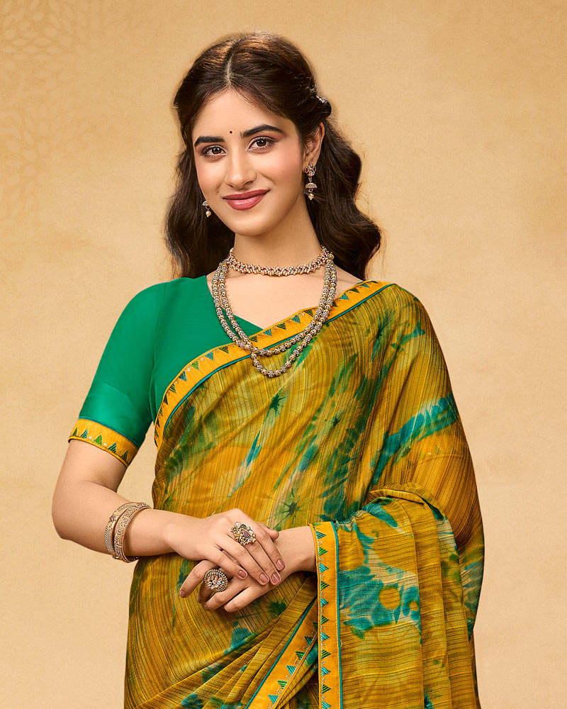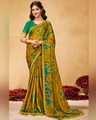 Vishal Prints Dark Mustard Printed Fancy Chiffon Saree With Fancy Border