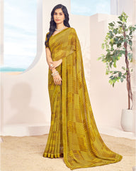 Vishal Prints Dark Mustard Printed Georgette Saree With Fancy Border