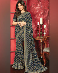 Vishal Prints Dark Navy Blue Printed Georgette Saree With Fancy Border