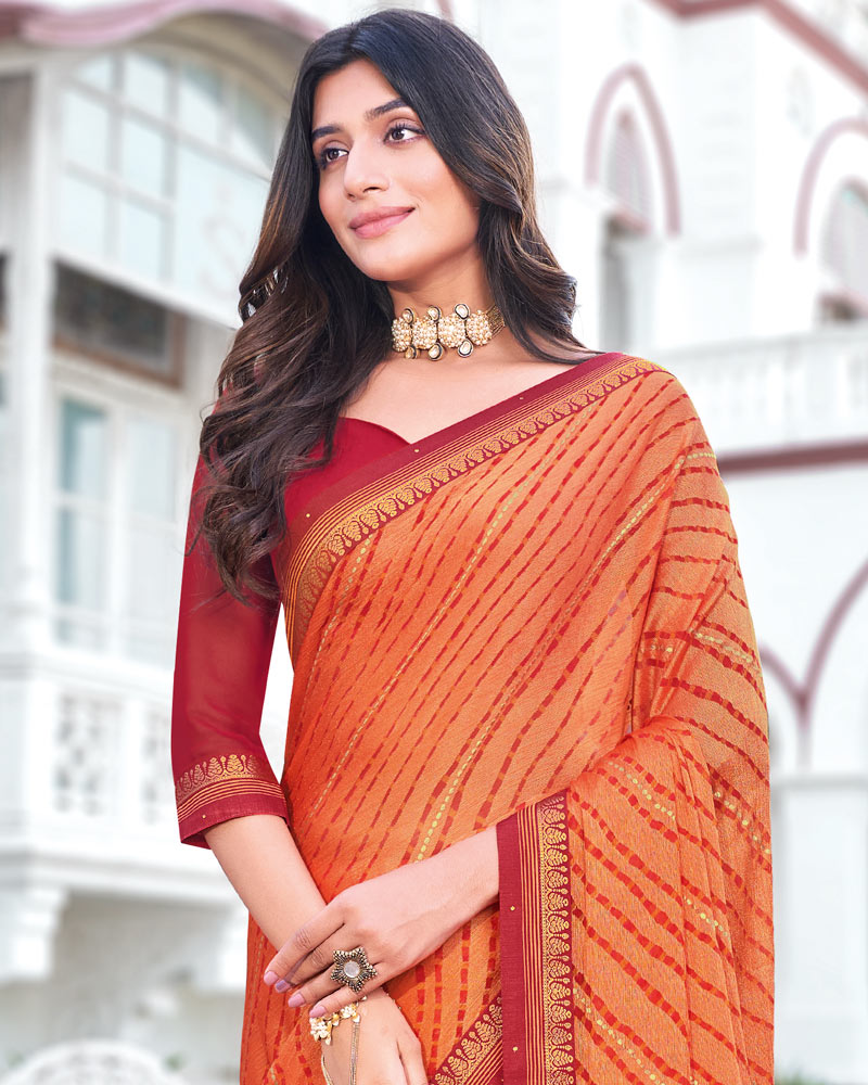 Vishal Prints Dark Orange Printed Brasso Saree With Fancy Border
