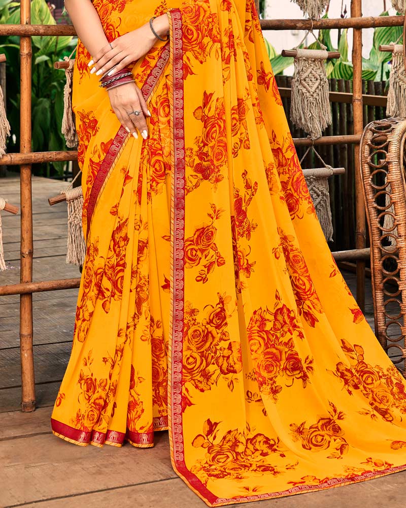 Vishal Prints Dark Orange Printed Georgette Saree With Fancy Border