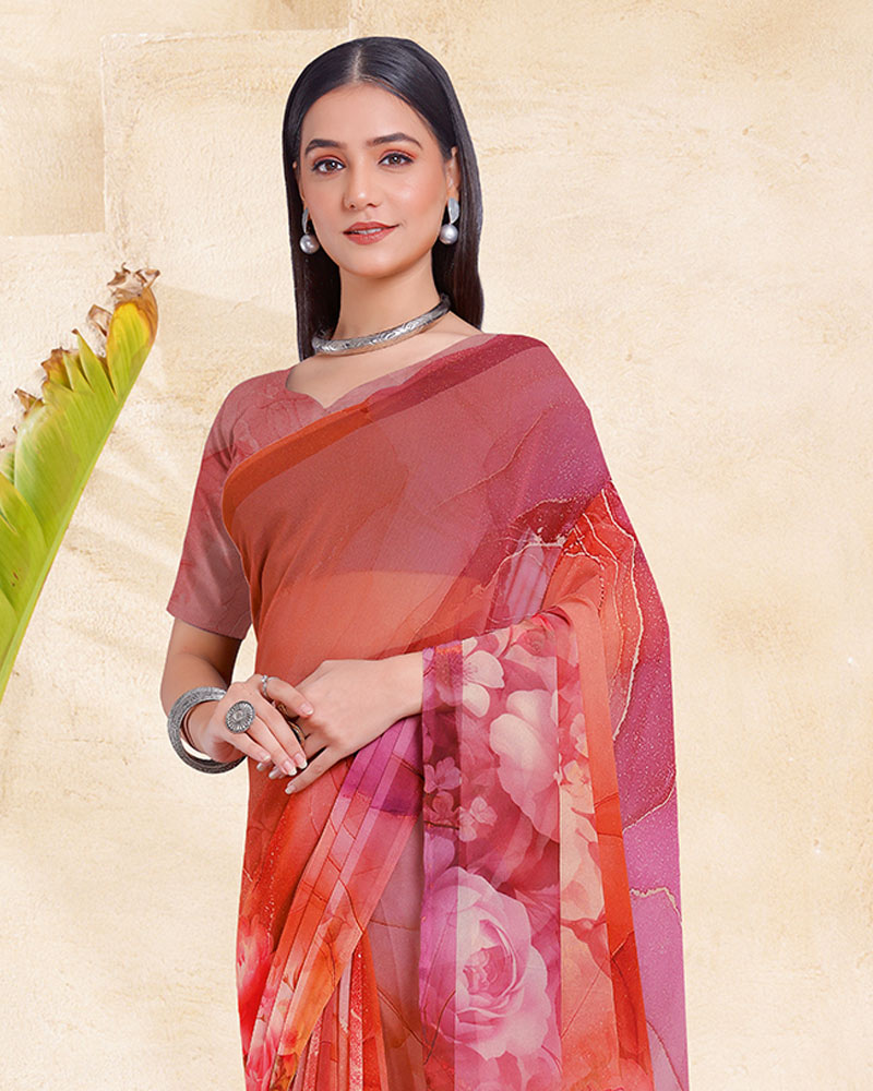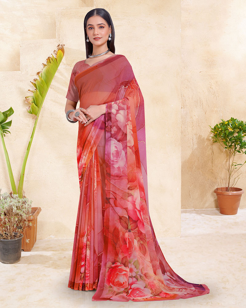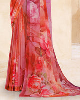 Vishal Prints Dark Pastel Red Digital Print Georgette Saree