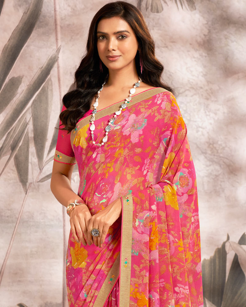 Vishal Prints Dark Pink Printed Georgette Saree With Fancy Border