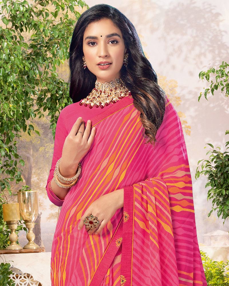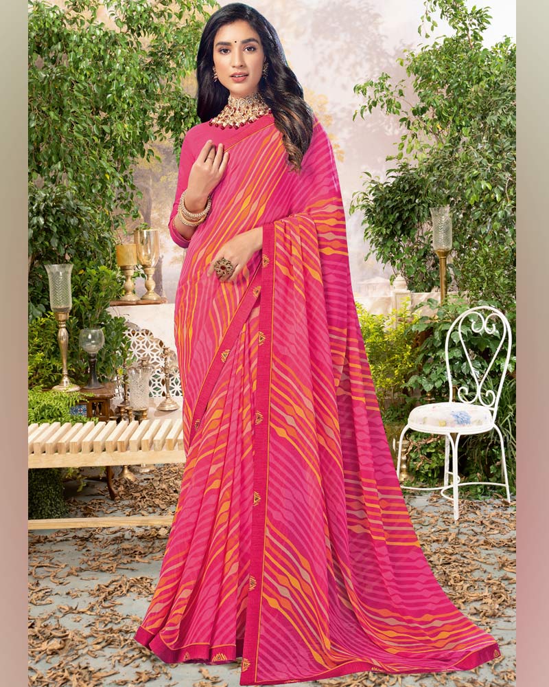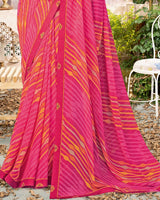 Vishal Prints Dark Pink Printed Georgette Saree With Fancy Border