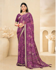 Vishal Prints Dark Purple Criva Crepe Digital Print Saree With Weaved Viscose Patta
