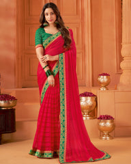Vishal Prints Dark Red Designer Patterned Chiffon Saree With Zari Border