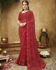 Vishal Prints Dark Red Printed Georgette Bandhani Print Saree With Fancy Border