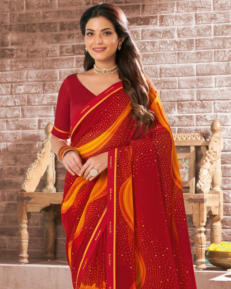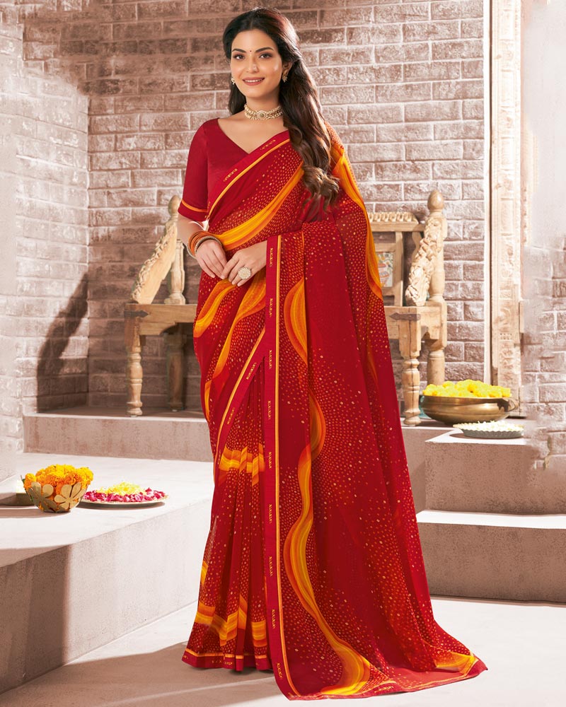 Vishal Prints Dark Red Printed Georgette Saree With Fancy Border