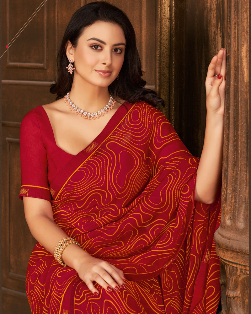 Vishal Prints Dark Red Printed Georgette Saree With Fancy Border