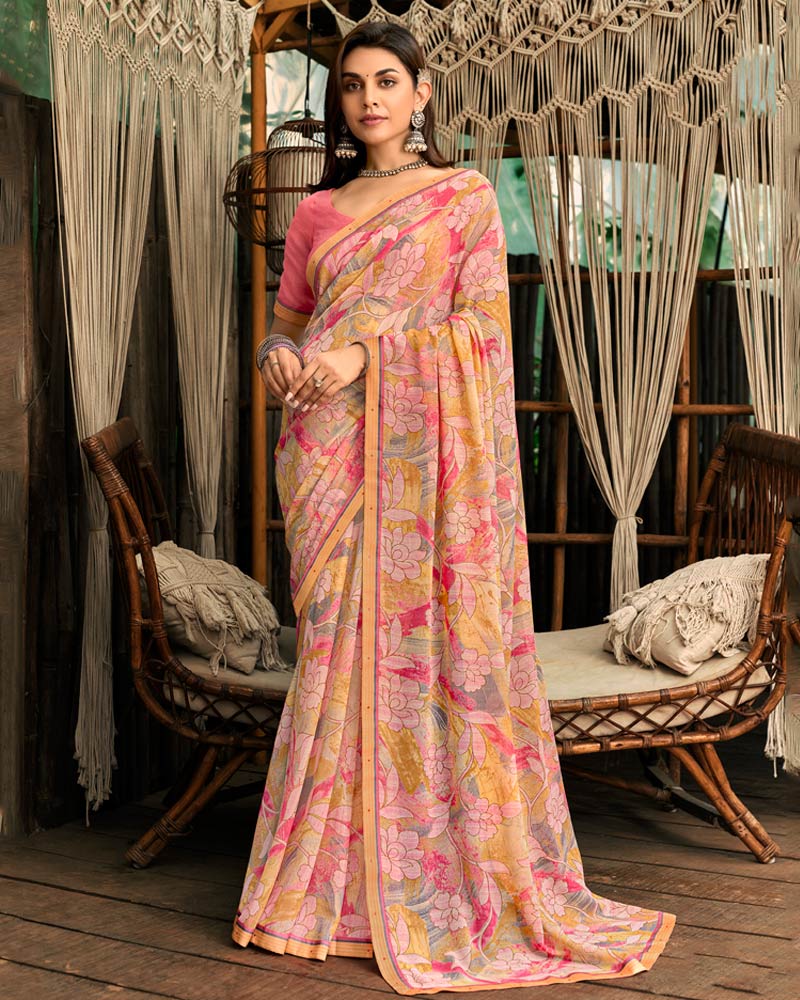 Vishal Prints Dark Salmon Orange Printed Georgette Saree With Fancy Border