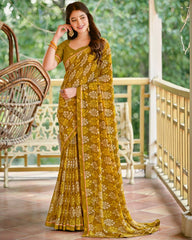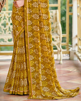 Vishal Prints Dark Sand Brown Printed Georgette Saree With Fancy Border