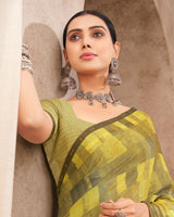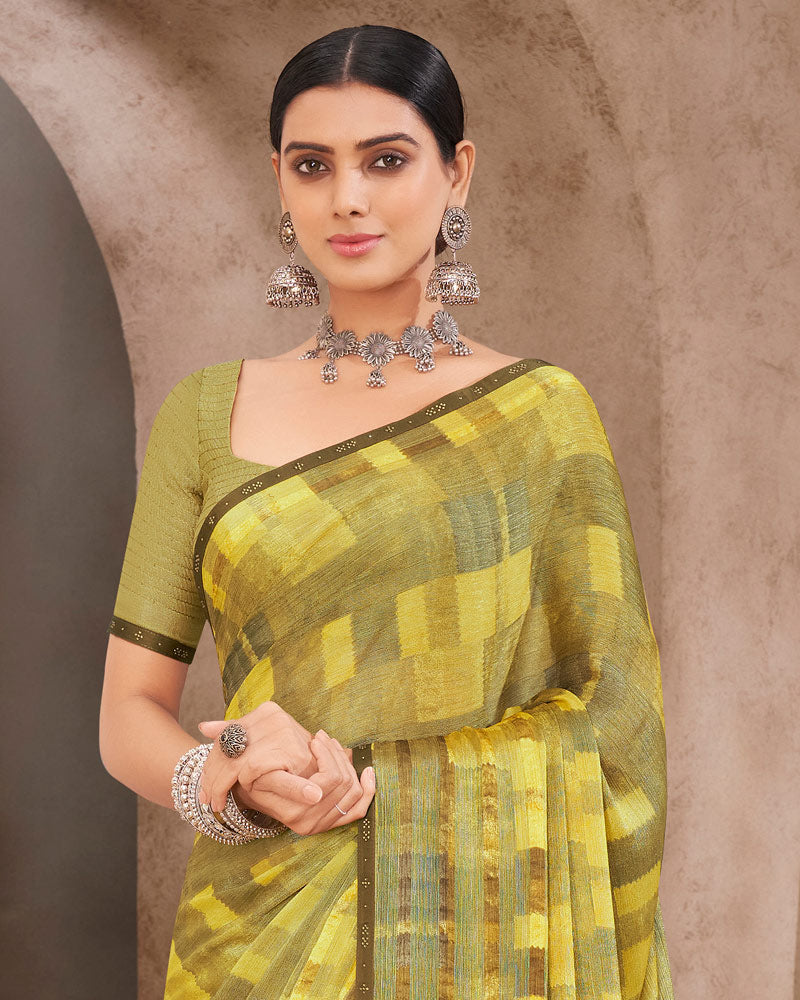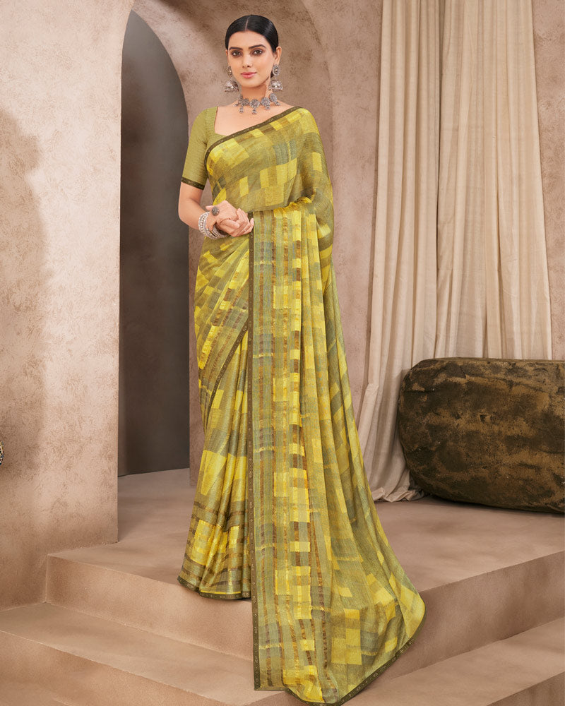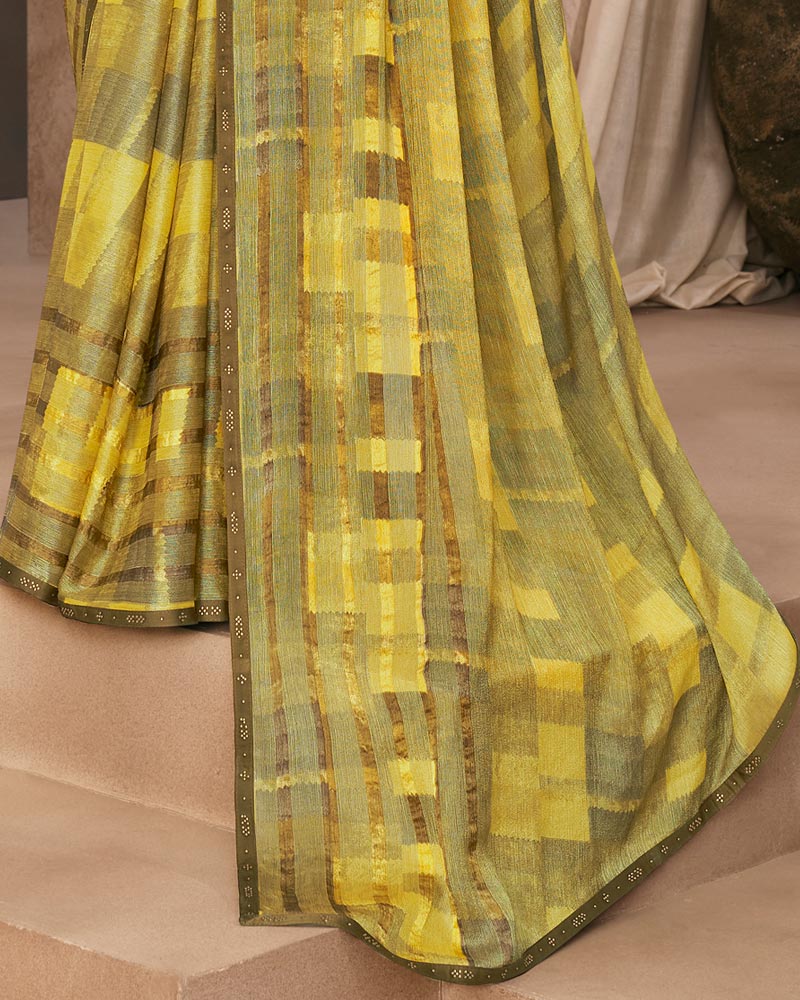 Vishal Prints Dark Sand Printed Brasso Saree With Fancy Border