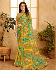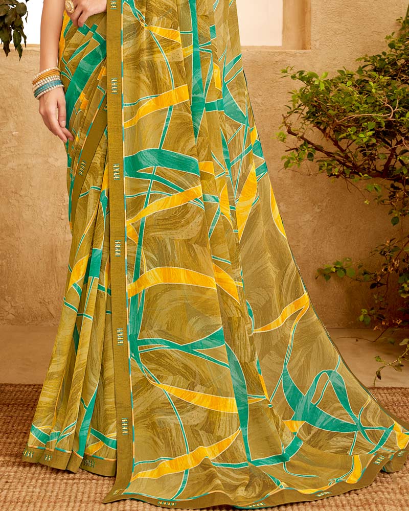 Vishal Prints Dark Sand Printed Georgette Saree With Fancy Border
