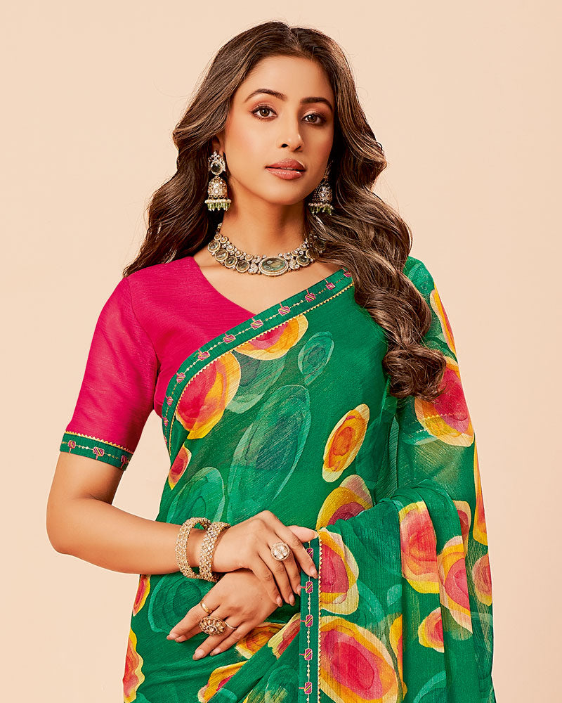 Vishal Prints Dark Spring Green Printed Fancy Chiffon Saree With Border