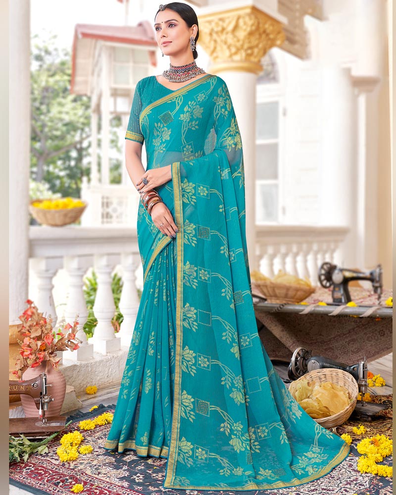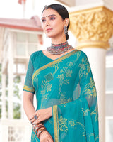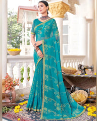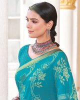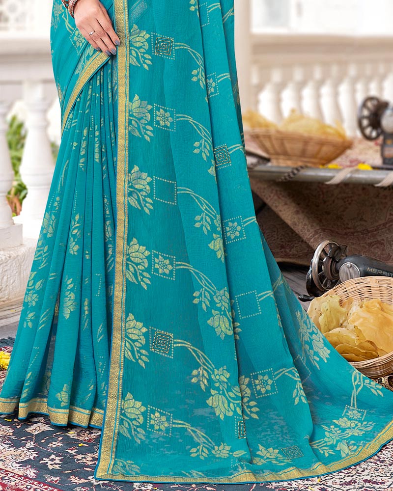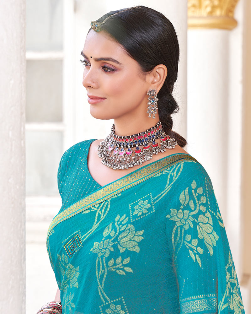 Vishal Prints Dark Turquoise Blue Brasso Saree With Diamond Work And Zari Border