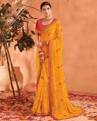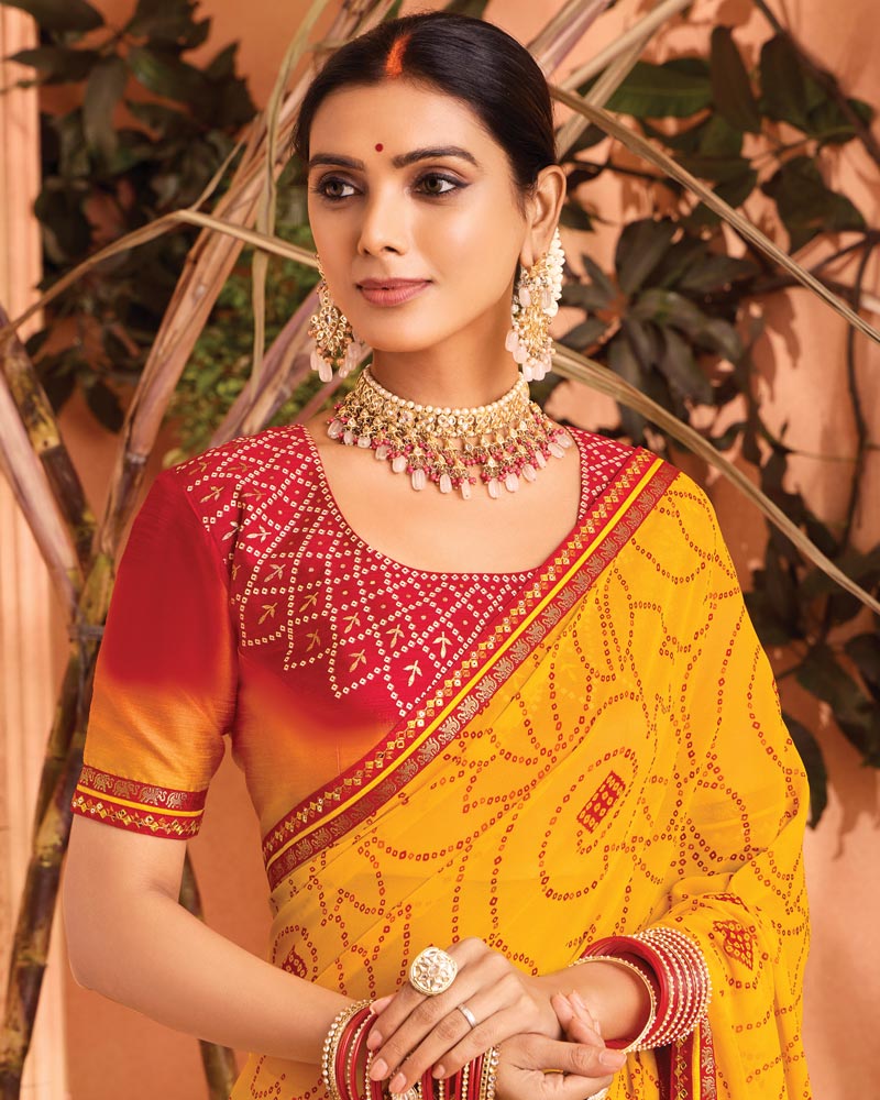 Vishal Prints Dark Yellow Bandhani Print Georgette Saree With Foil Print And Fancy Border