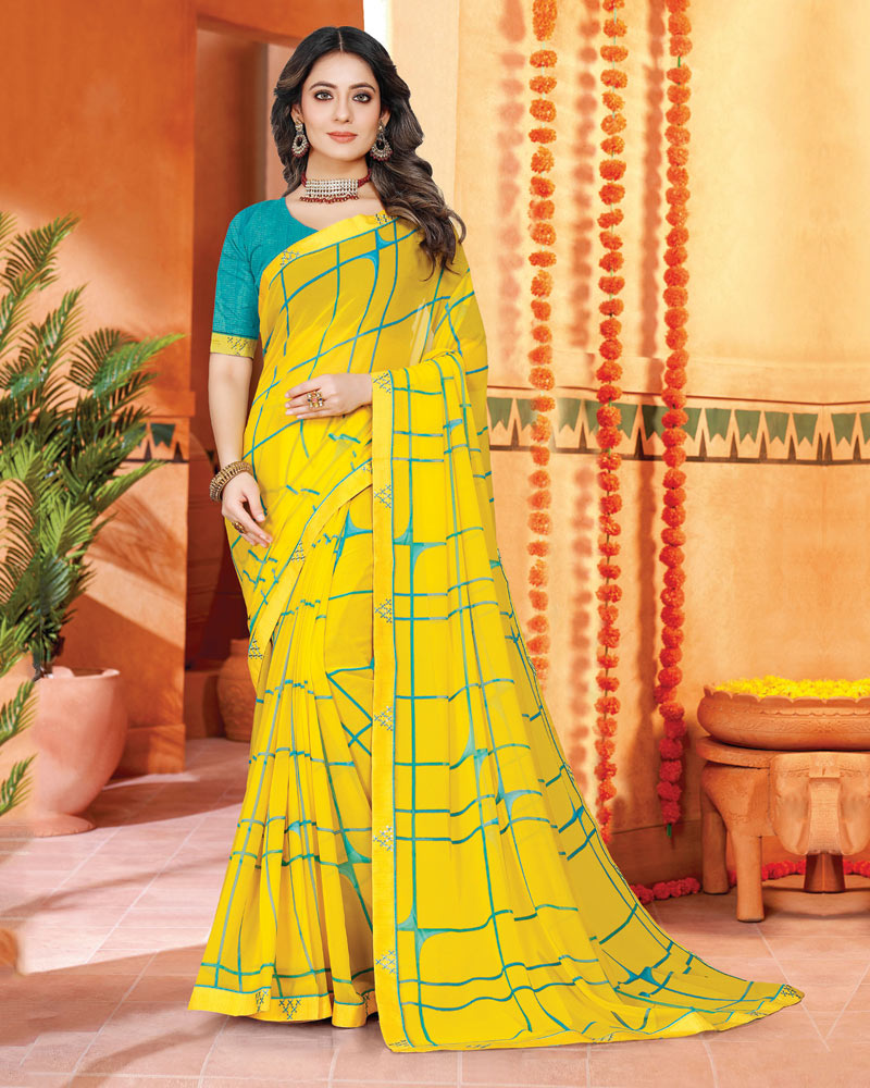 Vishal Prints Dark Yellow Printed Georgette Saree With Fancy Border