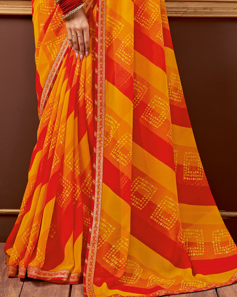 Vishal Prints Dark Yellow Printed Georgette Saree With Fancy Border
