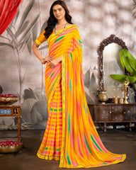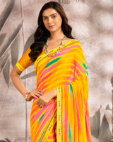 Vishal Prints Dark Yellow Printed Georgette Saree With Fancy Border
