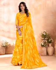 Vishal Prints Dark Yellow Printed Georgette Saree With Fancy Border