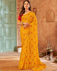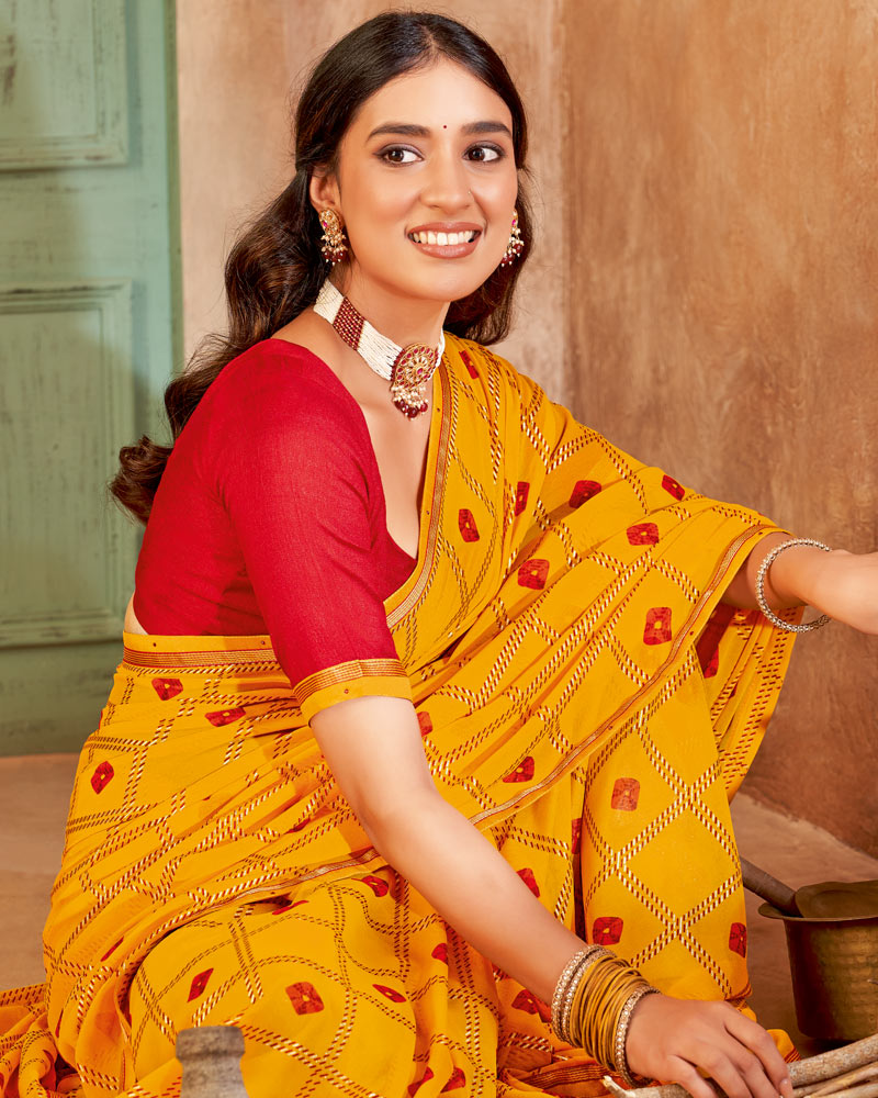 Vishal Prints Dark Yellow Printed Georgette Saree With Fancy Border