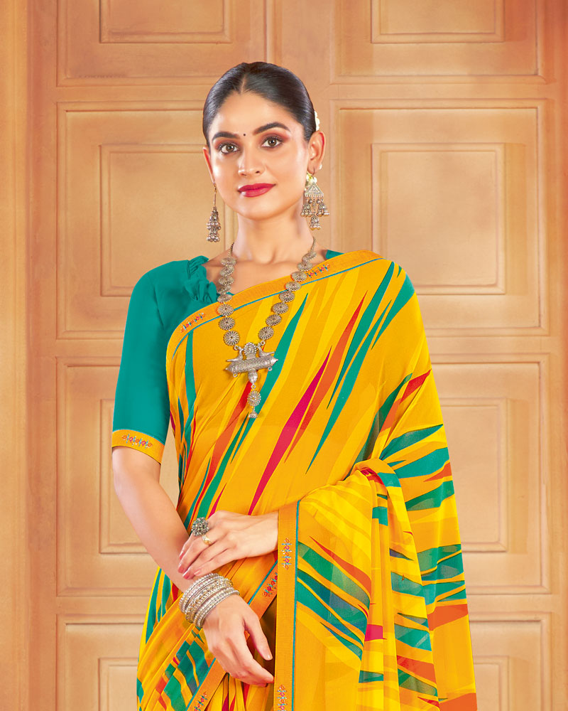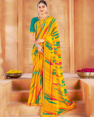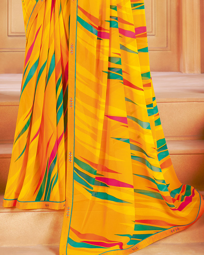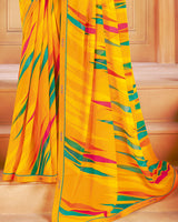 Vishal Prints Dark Yellow Printed Georgette Saree With Fancy Border