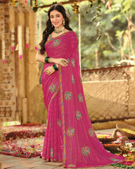 Vishal Prints Deep Carmine Pink Designer Fancy Chiffon Embroidery-Diamond Work Saree With Cut Work Border