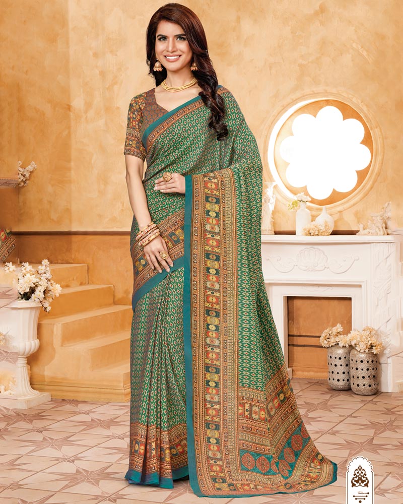 Vishal Prints Deep Sea Green Criva Crepe Digital Print Saree