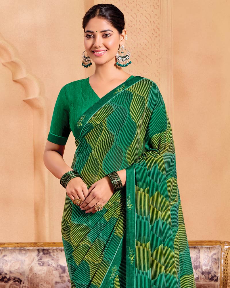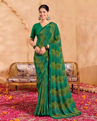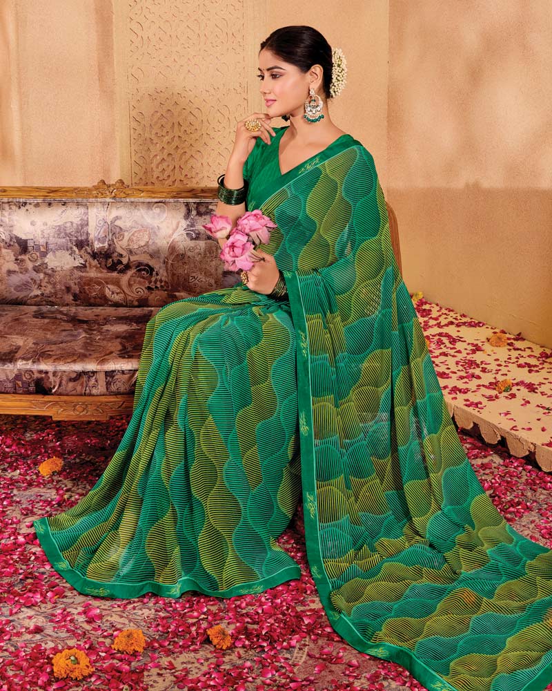 Vishal Prints Deep Sea Green Printed Georgette Saree With Fancy Border