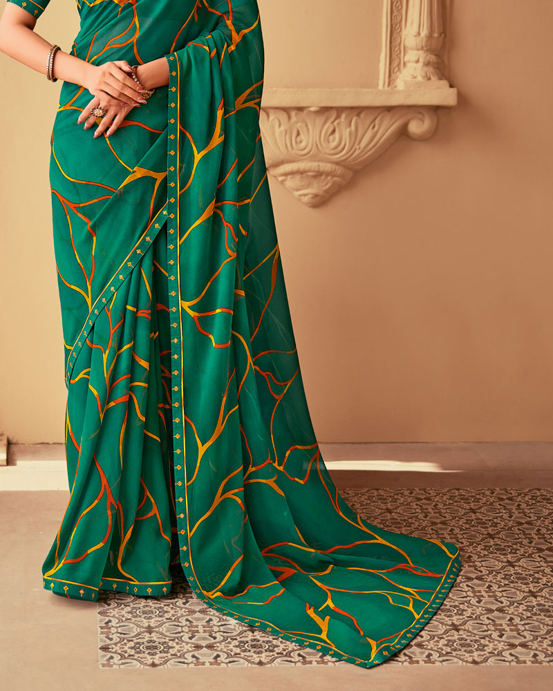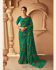 Vishal Prints Deep Sea Green Printed Georgette Saree With Fancy Border
