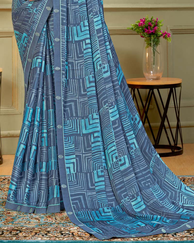 Vishal Prints Dusty Blue Printed Criva Crepe Saree With Fancy Border