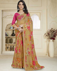 Vishal Prints Dusty Brown Printed Georgette Saree With Fancy Border