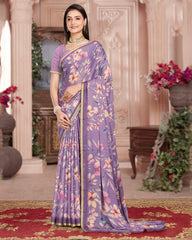 Vishal Prints Dusty Lavender Digital Print Criva Crepe Saree With Weaved Viscose Border