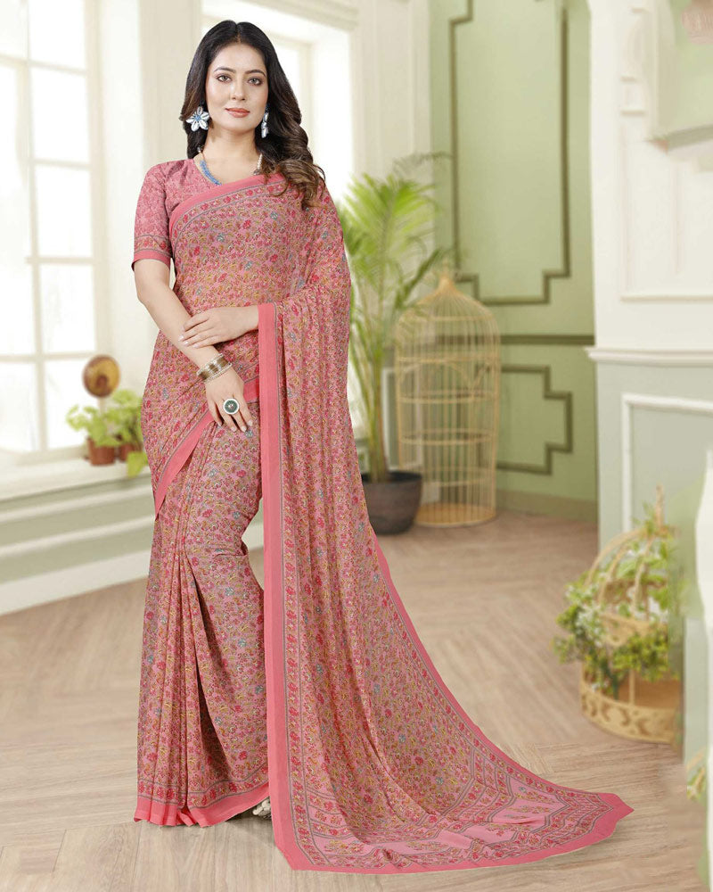 Vishal Prints Dusty Pink Digital Print Georgette Saree