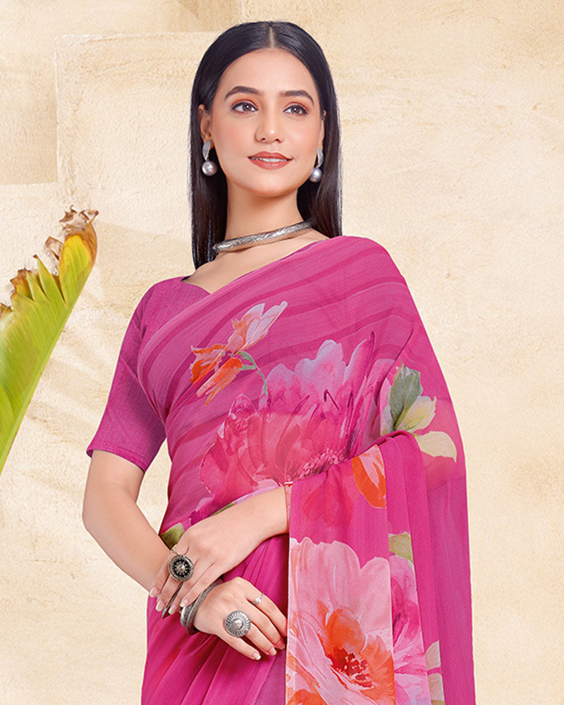 Vishal Prints Dusty Pink Digital Print Georgette Saree