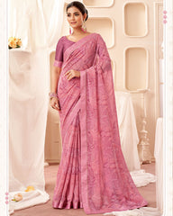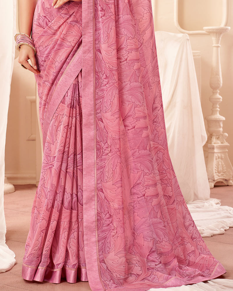 Vishal Prints Dusty Pink Printed Georgette Saree With Fancy Border