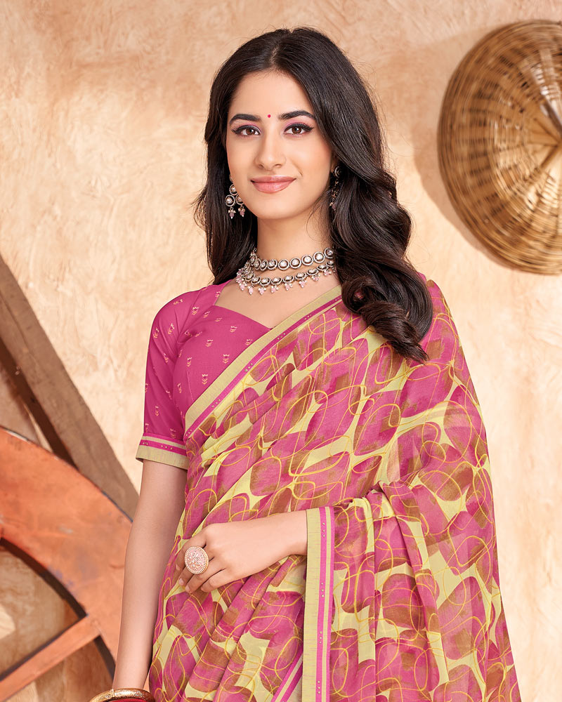 Vishal Prints Dusty Pink Printed Georgette Saree With Fancy Border